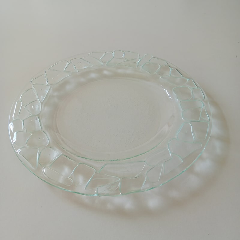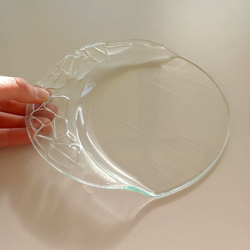 La gamme d’assiettes plates allie la transparence à la couleur ou à la texture. Les décors prennent place sur une partie de l’assiette pour laisser la transparence du verre s’exprimer.